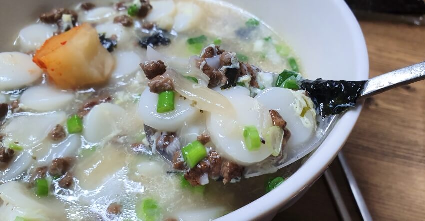 보통 떡국을 만들 때 소고기는 두부와 함께 간장에 짜게 볶아서 양념장으로써 간을 맞추는 용도로만 사용한다. 고기를 좋아해서 많이 먹고 싶더라도 간이 짜져서 많이 못 먹을 수밖에 없는 방식이다.